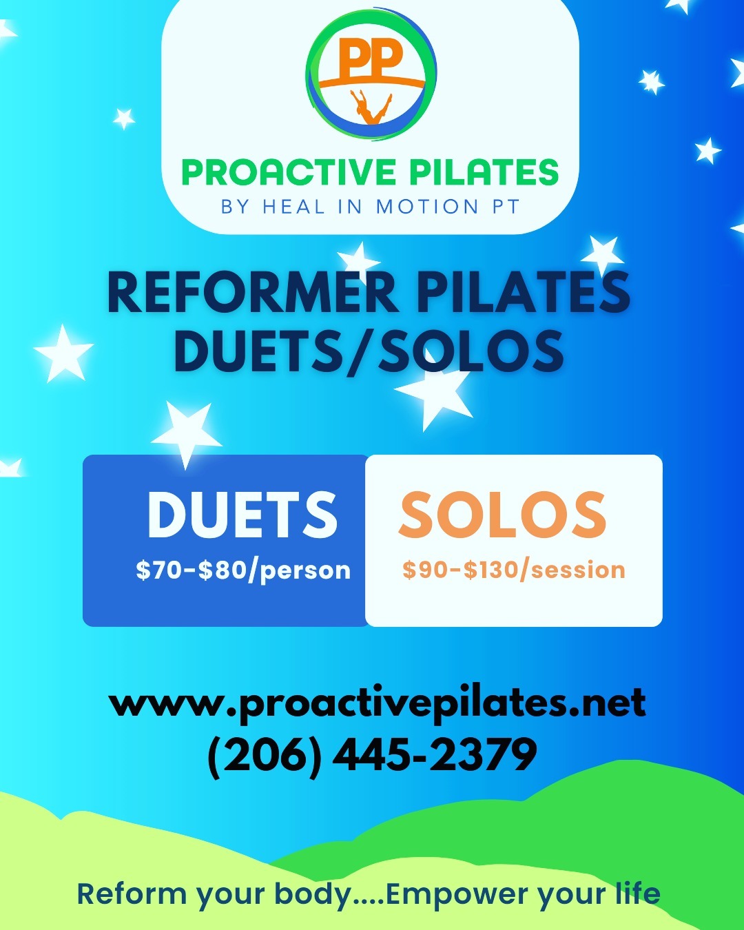 Pilates services are offered in partnership with Proactive Pilates. Therapeutic Pilates may be integrated into care plans at Heal in Motion PT, with additional Pilates classes and offerings available through ProactivePilates.net.